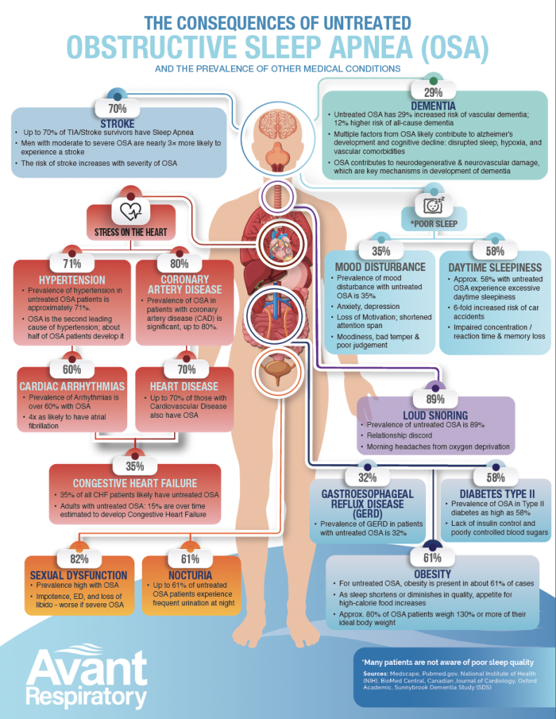 - Men with moderate to severe OSA are nearly 3x more likely to experience a stroke compared to those without OSA. (PubMed, Sleep apnea as a risk factor for stroke)
